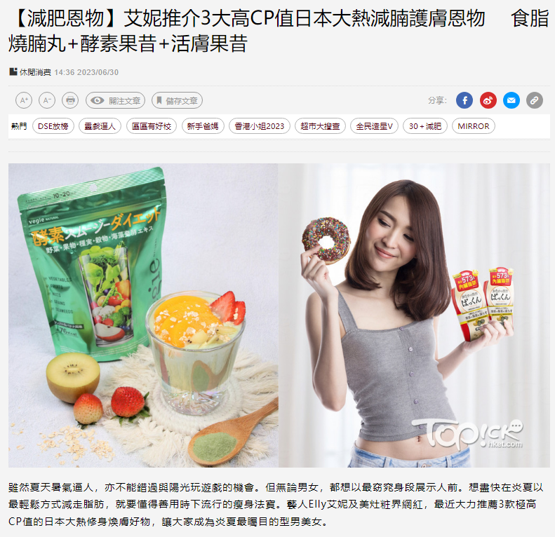 夏天暑氣逼人,無論男女,誰都想以最窈窕的身段展示人前,務求要搶盡眼球,但奈何脂肪太多,時間有限,如果想盡快要在炎夏以最輕鬆方式減走脂肪,就要懂得善用時下流行的瘦身法寶,連藝人Elly艾妮及美妝界網紅都誠意推薦的極高CP值日本大熱修身煥膚好物 :即沖1杯就可以排毒腸便的Vegie 365倍效酵素抗氧莓果昔/青汁果昔。