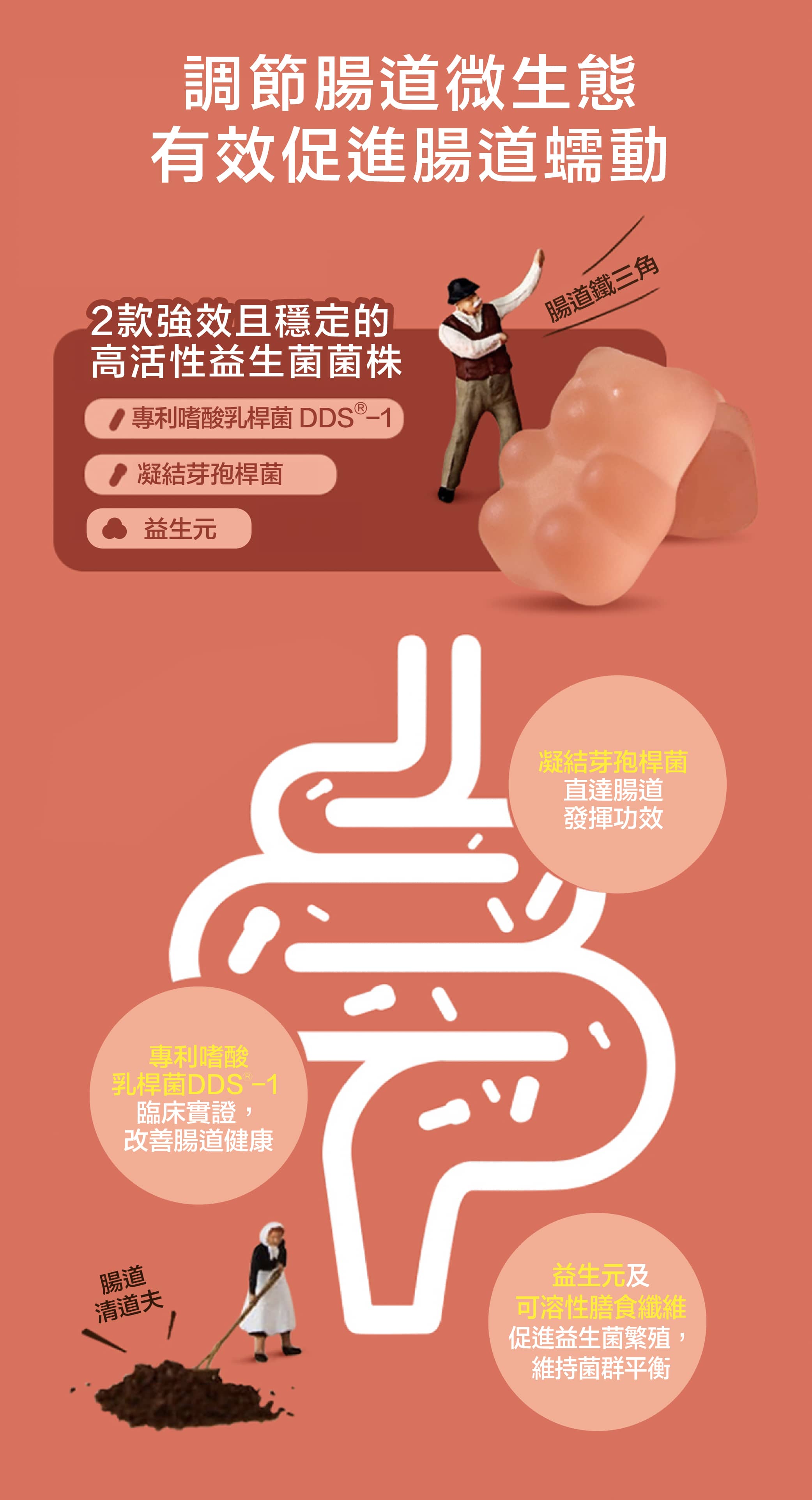 - 補充及平衡腸道微生態,抑壓壞菌繁殖,抗病入侵,從而提升免疫力。