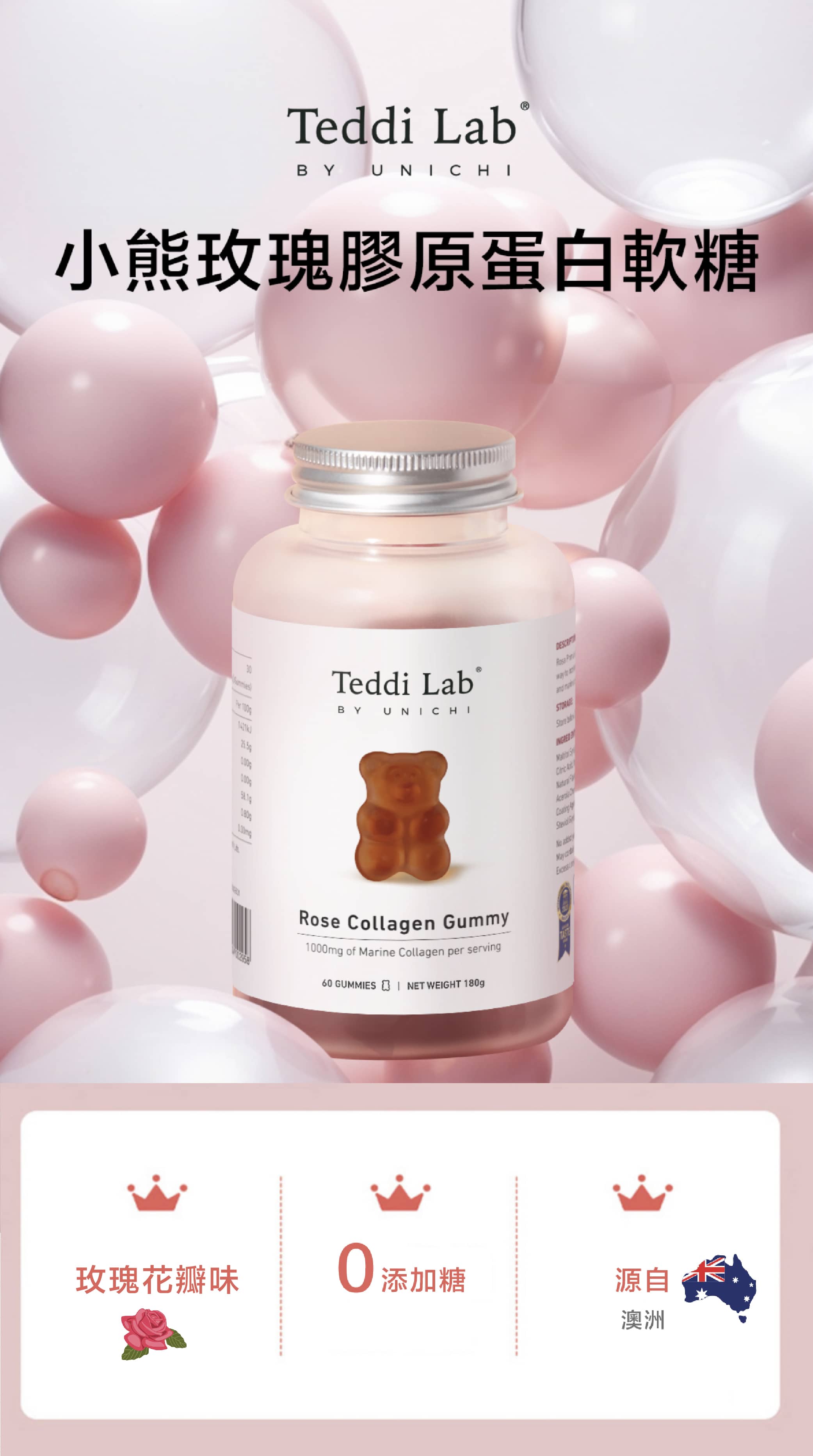 UNICHI 小熊玫瑰膠原蛋白軟糖 (玫瑰花瓣味)60粒