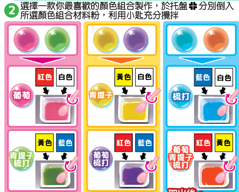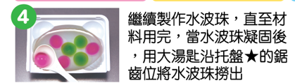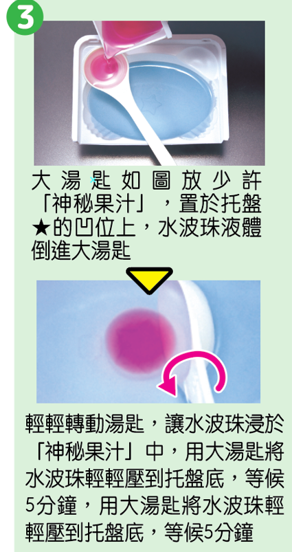 水晶球口感就如啫喱一樣,吃到嘴裡果汁就會爆開,非常好玩!套裝中共有三款不同顏色配搭,可挑選自己喜愛的組合挑戰!